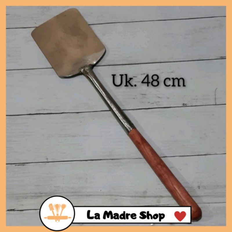 SPATULA SUTIL SODET MARTABAK TELUR Plat Gagang Kayu ❤ Uk. 48 cm