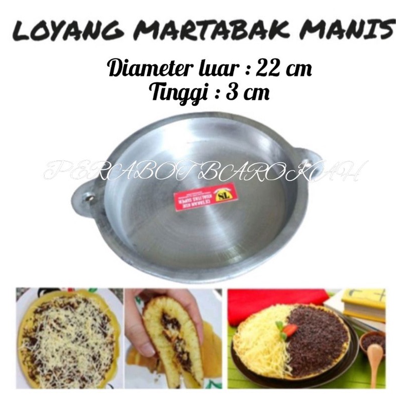 Loyang Martabak Manis 22 Cm Cetakan Kue Wajan Terang Bulan Bagus Tebal bisa dibeli di harga Rp. 50.000,00. Sampai saat ini sudah ada 697 kali dilihat orang. Dari jumlah tersebut 39 sudah memberi tanda love/suka.